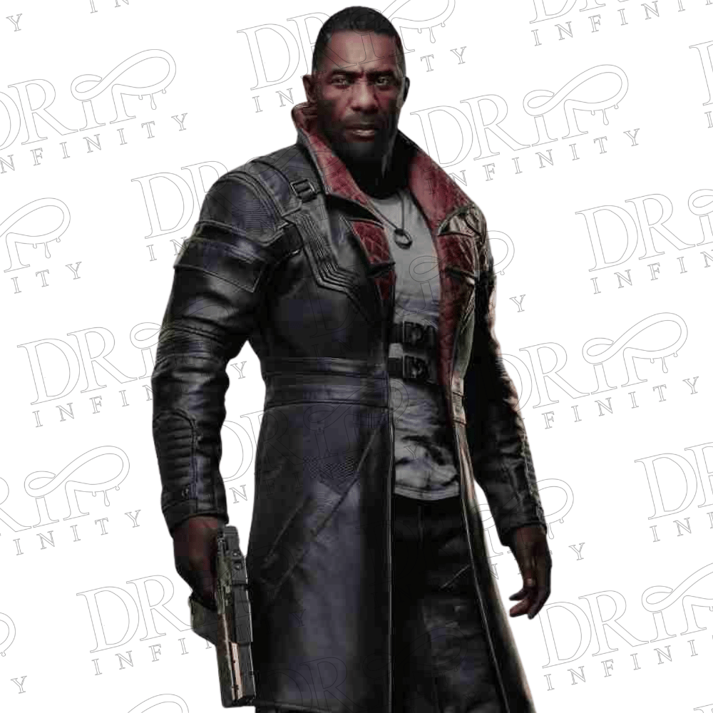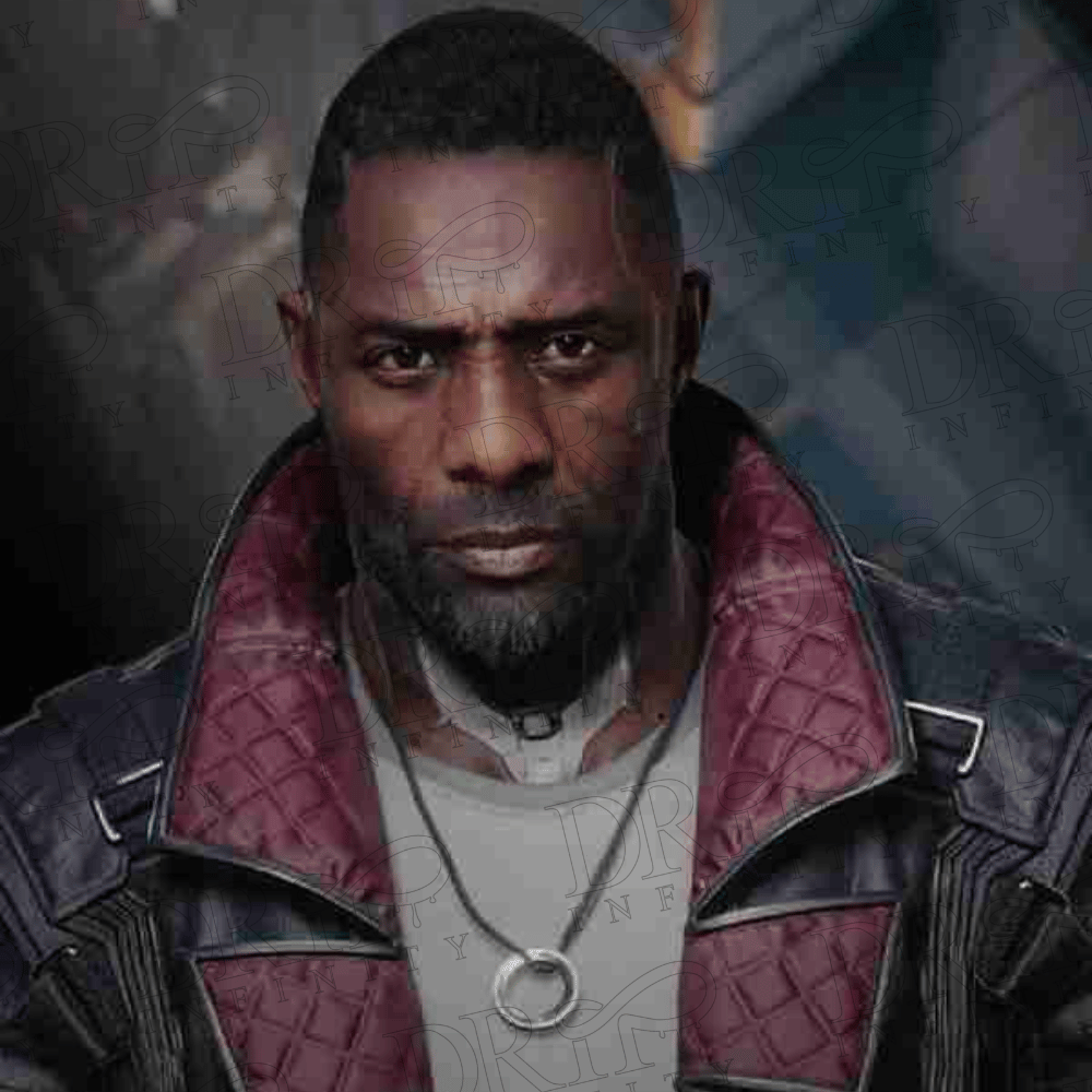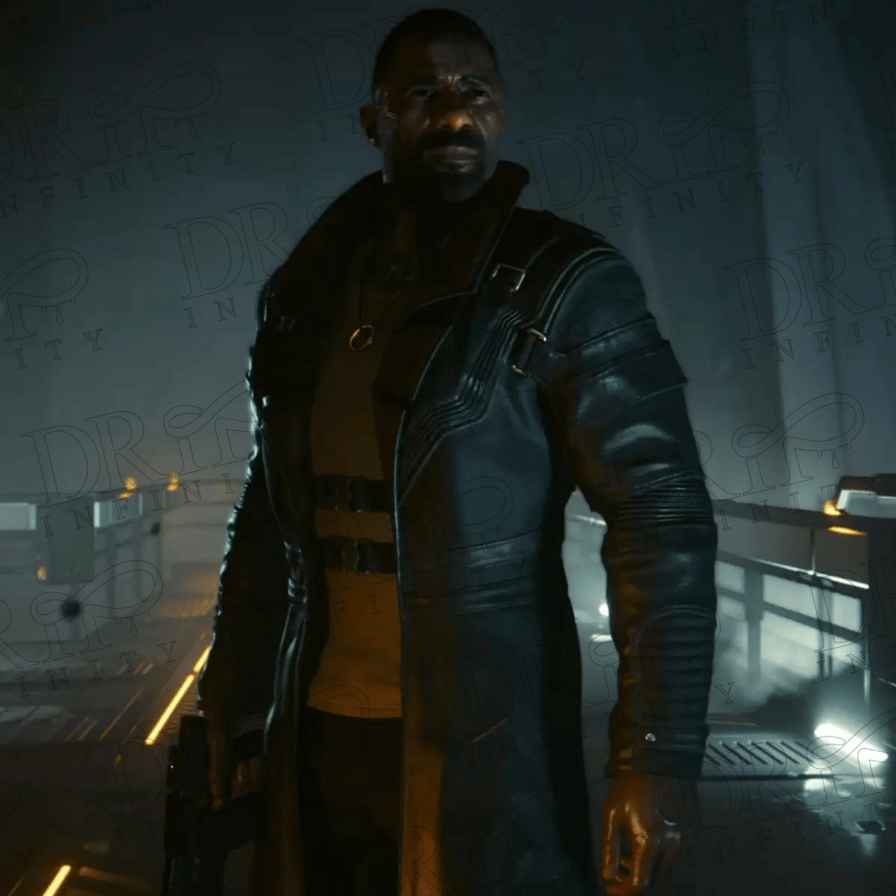DRIP INFINITY: Idris Elba Cyberpunk 2077 Phantom Liberty Solomon Reed Black Leather Coat