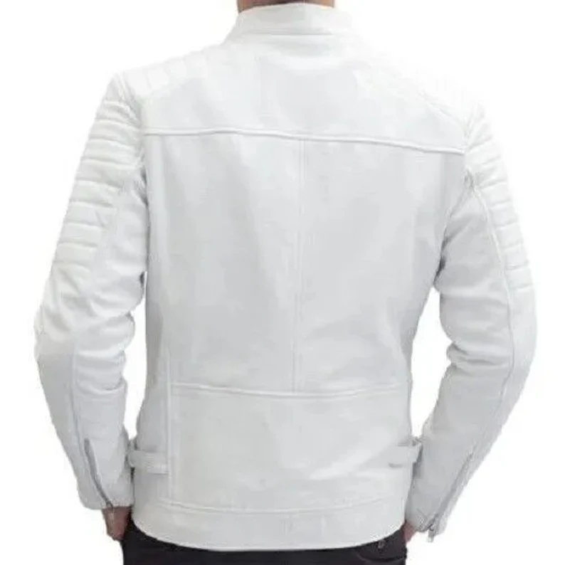 Elevate your style with our Men’s Cafe Racer White Quilted Authentic Lambskin Leather Jacket. Crafted from 100% real lambskin leather, this jacket is the epitome of luxury and sophistication.