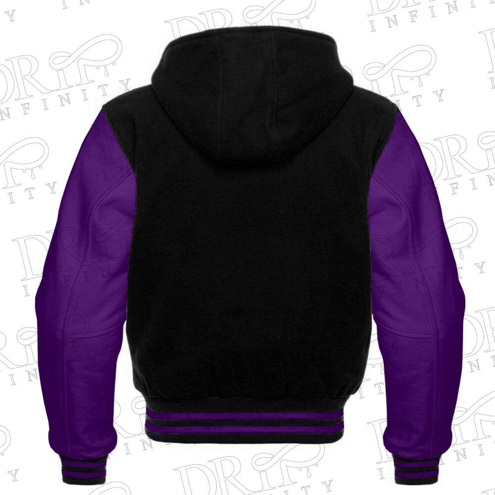 DRIP INFINITY: Men’s Black & Purple Hooded Varsity Jacket