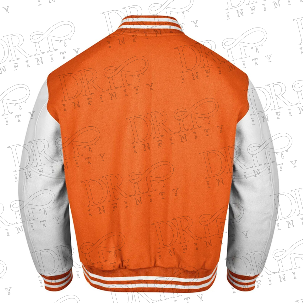 DRIP INFINITY: Orange & White Varsity Letterman Jacket