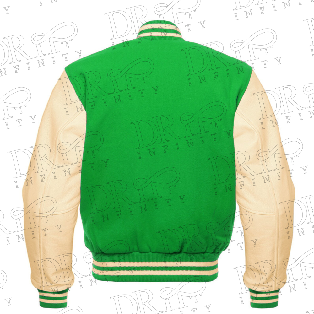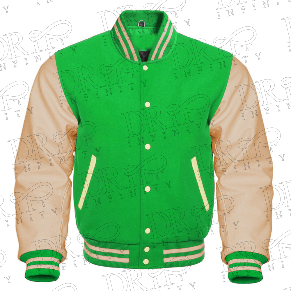 DRIP INFINITY: Parrot Green & Cream Varsity Letterman Jacket
