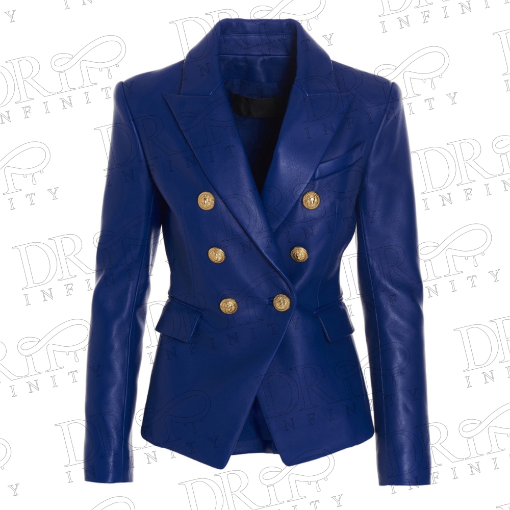 DRIP INFINITY: Women Blue Lambskin Leather Blazer