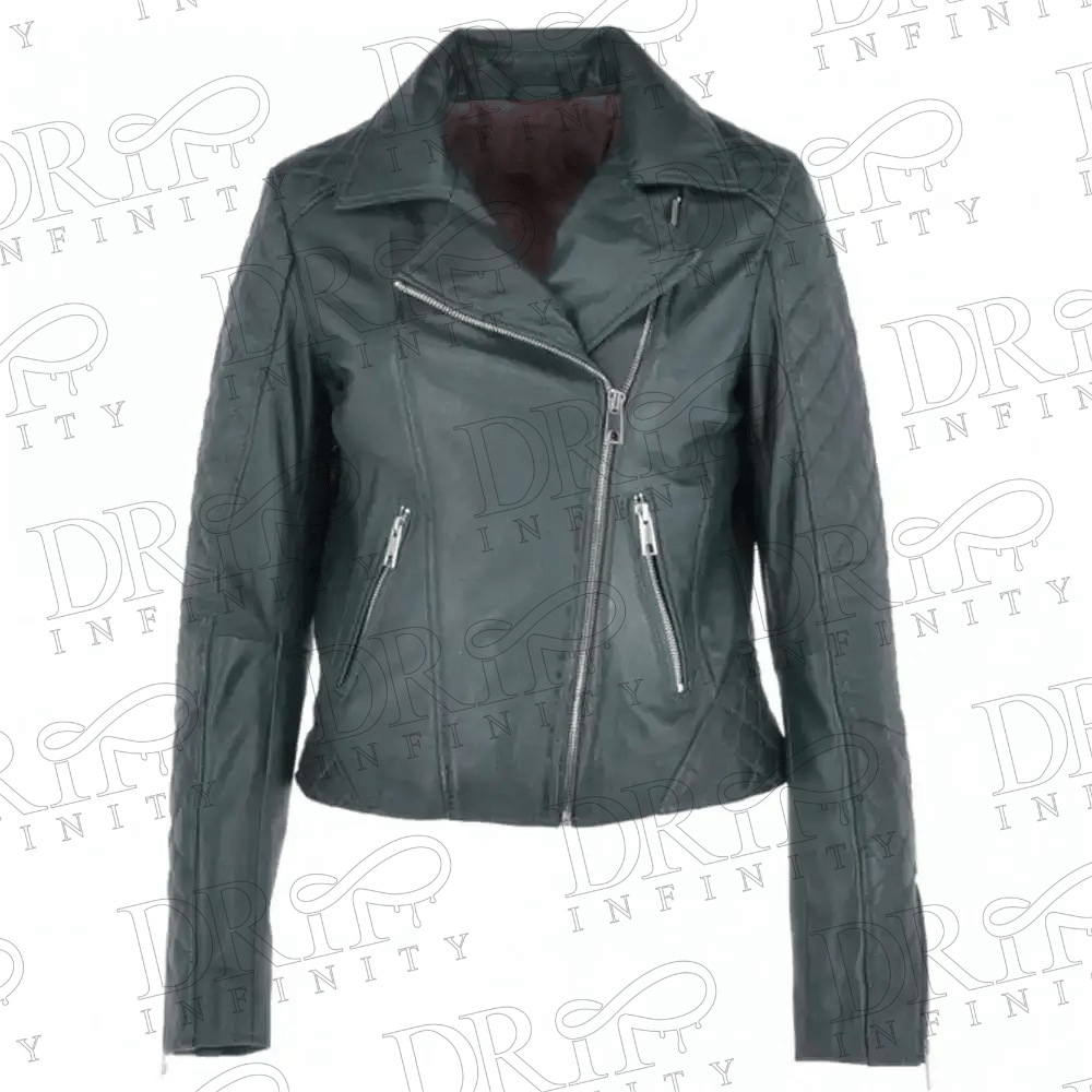 DRIP INFINITY: Women’s Bottle Green Leather Biker Jacket