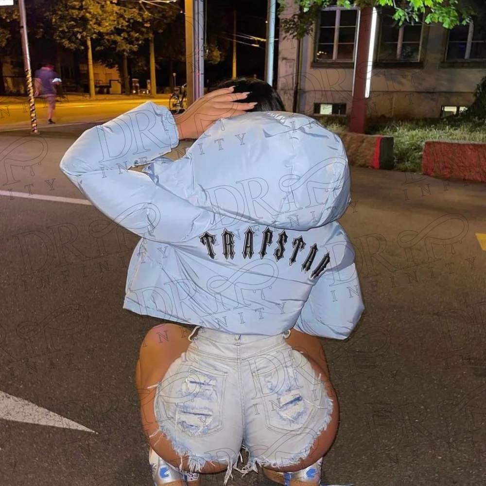 DRIP INFINITY: Women’s Ice Blue Trapstar Irongate Hooded Puffer Jacket