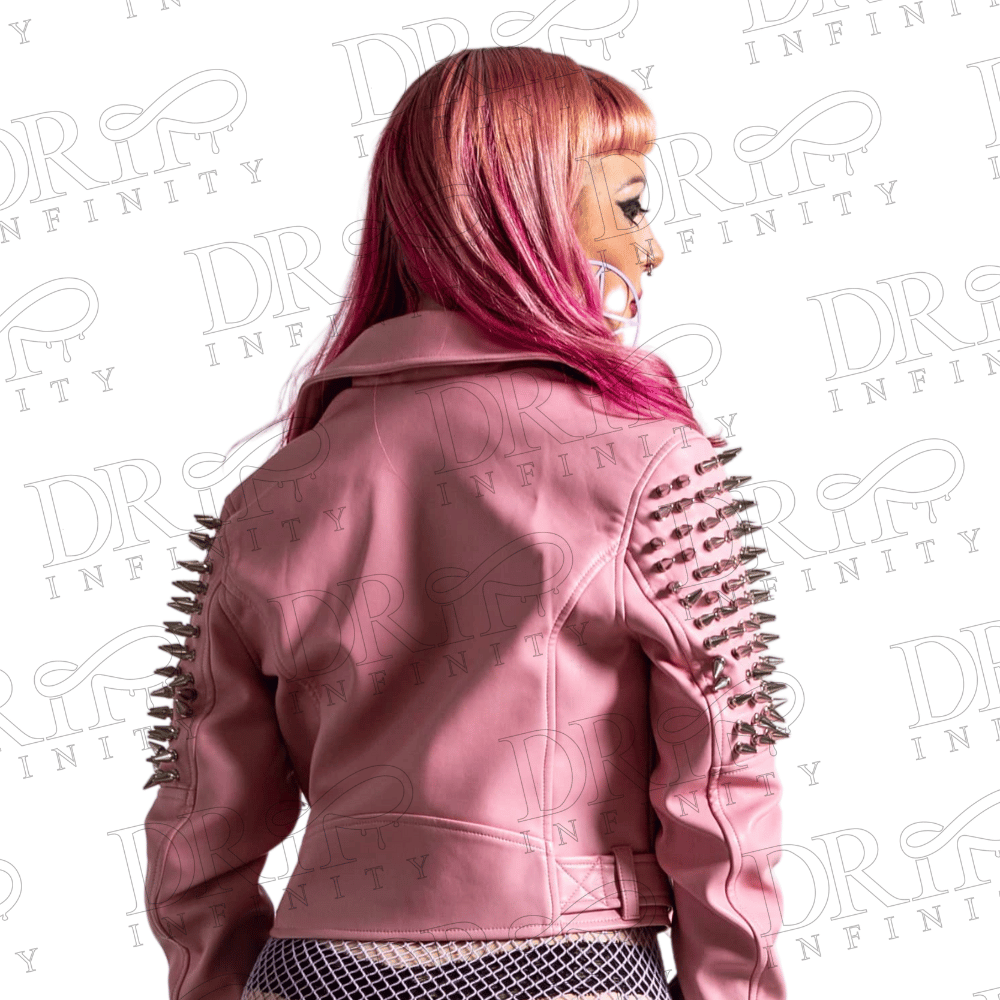 DRIP INFINITY: Women’s Pink Studded Rock Steam Punk Style Biker Jacket