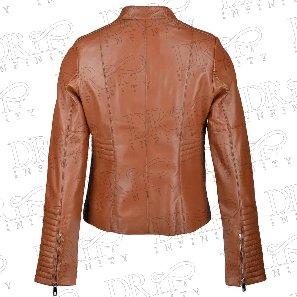 DRIP INFINITY: Women’s Tan Biker Style Leather Jacket
