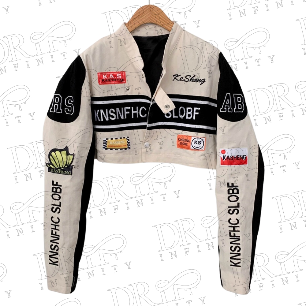 DRIP INFINITY: Women’s Vintage Cropped Racer Leather Jacket